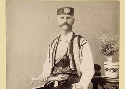 Давайте посмотрим на фотографию Марко внимательнее. Головной убор, по-черногорски «капа» или «завратка», украшен двуглавым царским орлом Российской империи. На белый кафтан одет верхний расшитый жилет «елек». На рубаху под кафтан надевался жилет «джамадан». Седельные пистолеты «леденицы» тоже были принадлежностью национального костюма, но у Марко оружие – не украшение, а всегда готово к бою, по краям верхнего жилета устроены гнезда для патронов. Подпоясан Марко цветным широким поясом, называемым по-черногорски «силав». Вот такая колоритная фигура, гарцуя на белом коне, зорко охраняла безопасность паломнических караванов Палестинского общества. Кстати, фотография сделана в Иерусалиме в фотоателье Гарабеда Крикорьяна, фотографа Армянского квартала, который в свое время обучался у самого Исайя Гаребедьяна, Армянского патриарха в Иерусалиме, основавшего в 60-е годы XIX века в Старом городе первую фотошколу.