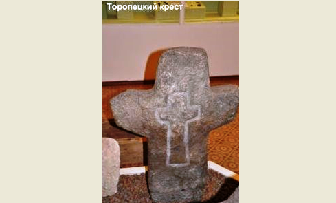 Третий – «Тороповский» крест – находится в музее города Андреаполя с 1978 года. Его тоже датируют XII веком, и доставлен он был из деревни Торопово, с берега Западной Двины. В музее представлена целая композиция местных, в основном, надгробных крестов.