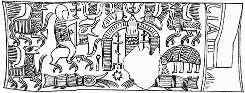 Центр сосуда занимает символическая картина. Поскольку светец был сделан примерно в XVI веке, рисунок крайне прост, даже примитивен. Здесь мы не найдем перспективы; художник боится пустоты в рисунке и все свободное пространство заполняет не относящимися к сюжету картины геометрическими фигурами. Центр сосуда – высокая шатровая башня, осененная крестом, и арка. Это символическое изображение христианского храма, или Сиона. Подобный символ встречается очень часто на иконах не только XVI, но и XII-XIII веков.
