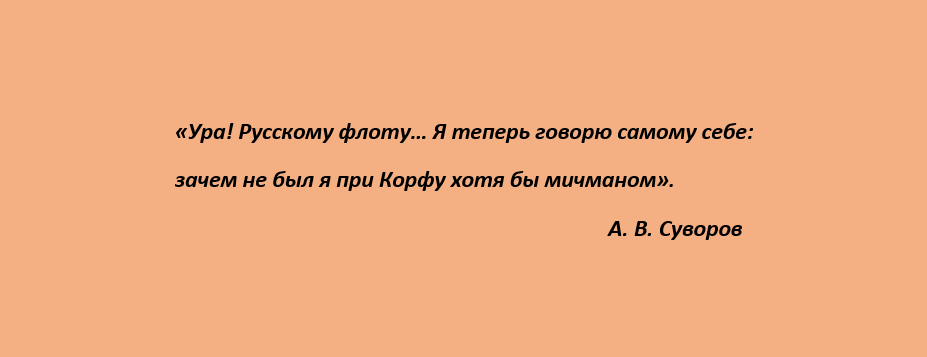 Историками это событие описывается так… В 1386–1797 годах остров принадлежал Венецианской республике. В 1797 году Корфу, как и другие Ионические острова, был занят французскими войсками, а в 1799 году, в результате трехмесячной осады объединенного русско-турецкого флота под командованием Ф.Ф. Ушакова, французский гарнизон был вытеснен с острова.