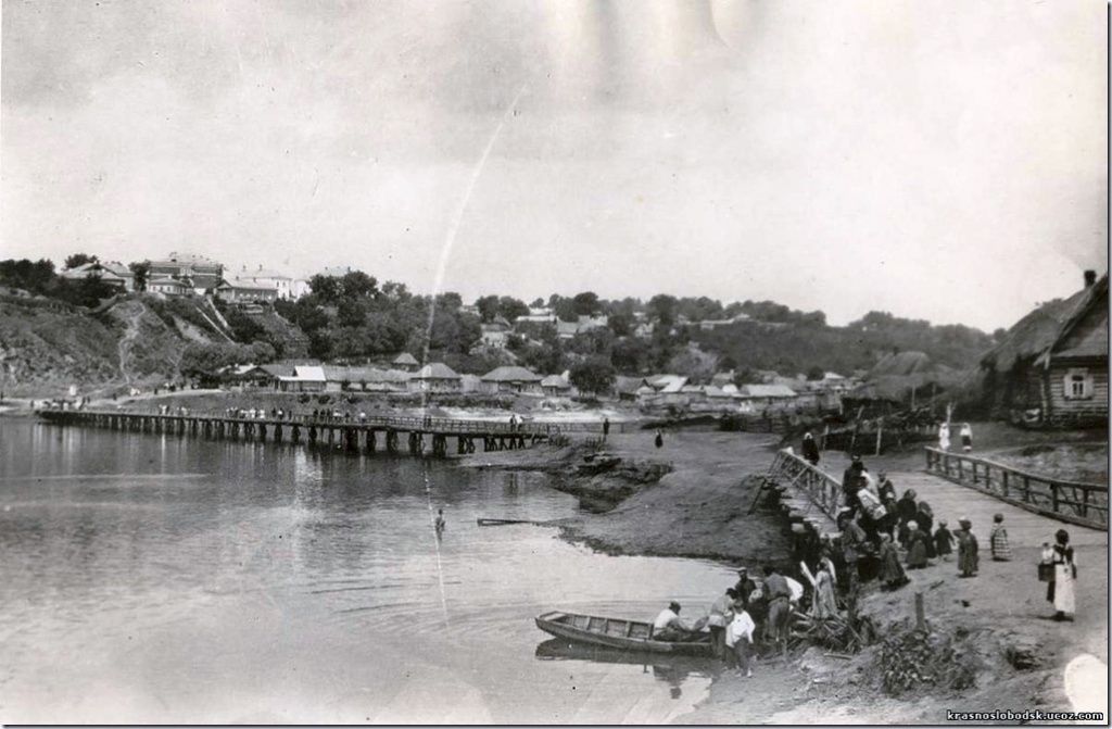 Довольно интересный случай произошел при постройке здания суда, что стоит рядом с детской спортивной школой. До революции на этом месте располагался магазин госпожи Кутузовой, во второй части здания – писчебумажный магазин Пикуса. В советское время здесь был сквер – любимое место отдыха краснослобочан. Для того, чтобы построить здание суда, необходимо было расчистить эту площадку, убрав заодно здание бывшего музея. В свое время его основательно отремонтировали и перевели сюда детскую художественную школу. Когда ковш экскаватора углубился на три метра, взгляду изумленных горожан открылись дубовые бревна, уложенные в один ряд. Первое впечатление, что это дренажная система XVI – начала XVII веков. Но данное место в письменных источниках историков-краеведов XIX века не указывается как болотистое.