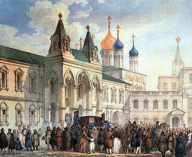 Женский монастырь в честь Вознесения Господня почти вплотную примыкал к кремлевской стене рядом со Спасской башней. Основательницей обители была вдова благоверного князя Димитрия Донского – великая княгиня Евдокия, в монашестве Евфросиния, прославленная Церковью в лике преподобных. Она отдала для размещения насельниц свои великокняжеские палаты.