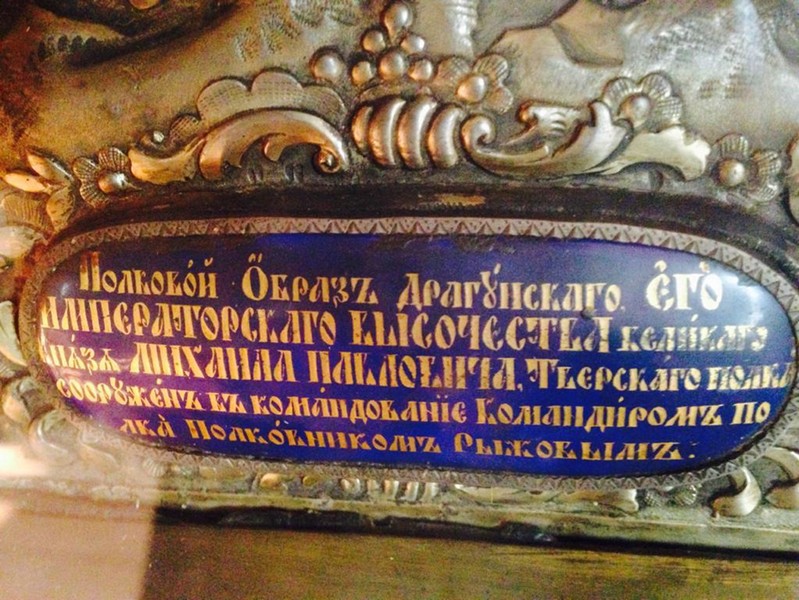 Подлинник главной иконы Тверского драгунского полка был создан, судя по сохранившейся табличке на иконе, командиром Тверского драгунского полка полковником Иваном Ивановичем Рыжовым, командовавшим полком с 1839 по 1845 год.