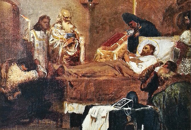 Мы видим последние дни жизни святого князя. Александр принимает монашеский постриг. Можно предположить, что в его сердце было стремление к Богу, желание вечного общения с Творцом. В роду святого князя Александра Невского монашеские постриги в виде предсмертного принятия схимы стали традицией, наследуемой из поколения в поколение. Так, его сын Даниил, первый удельный князь Московский, принял монашеский постриг и скончался 5 марта 1303 года. Дедовскому и отцовскому примеру в 1340 году последовал великий князь Иван Данилович Калита после того как, согласно «Мазуринскому летописцу», он услышал среди ночи некий вещий глас, «и, нимало не помешкав, иде в монастырь Преображенья Господня, его же сам устроил близ двора своего, оставив вся и пострижеся во иноческий образ, и с миром к богу отъиде, преставися месяца марта в 31 день».