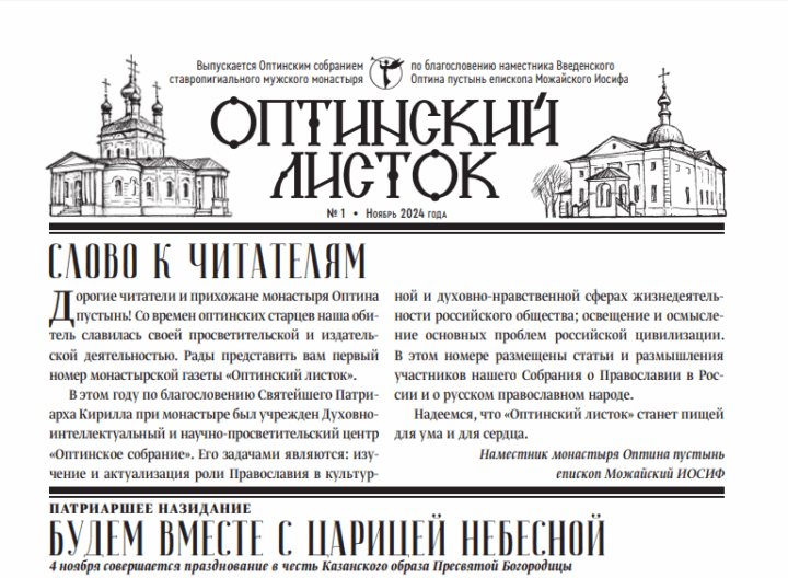 Главная - Оптинский листок