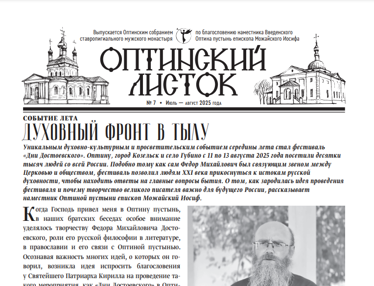 Главная - Оптинский листок - № 7 • ИЮЛЬ - АВГУСТ 2025 ГОДА