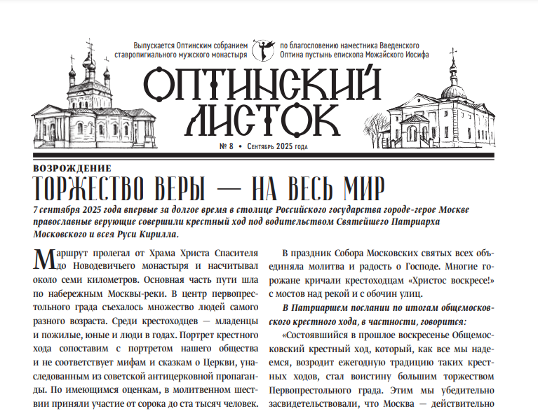 Главная - Оптинский листок - № 8 • СЕНТЯБРЬ 2025 ГОДА