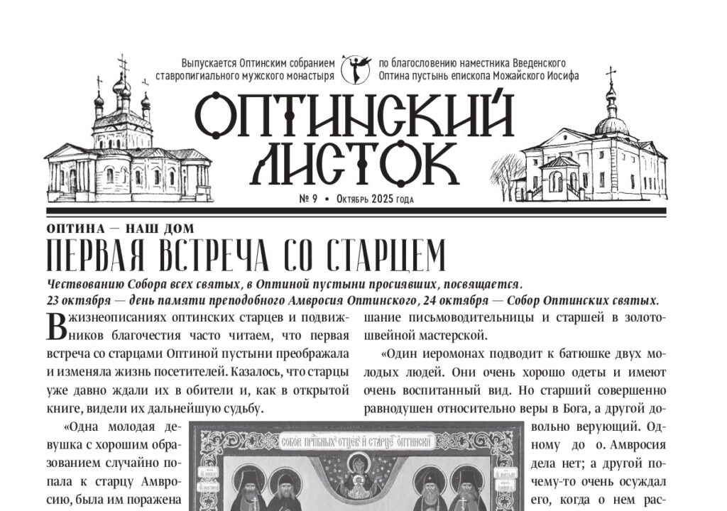 Главная - Оптинский листок - № 10 • ОКТЯБРЬ 2025 ГОДА