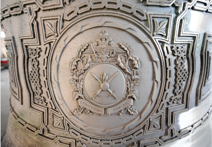 Убранство колоколов разработано на основе орнаментов, которые украсят сам храм. В нем будут отражены темы Победы в Великой Отечественной войне, видов и родов войск, а также иконы покровителей русского воинства. Главный колокол-благовестник украсят барельефы с изображениями ключевых событий Великой Отечественной войны.