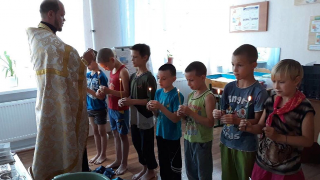 Настоятель Благовещенского храма города Углегорск на востоке Украины протоиерей Давид Барахтенко окрестил восемнадцать детей, которые живут и учатся в специализированной школе-интернате №6.