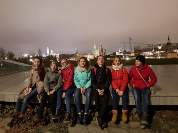 Участники проекта поехали на метро на Красную площадь. “Красная площадь, Кремль, Спасская башня, исторический музей, ГУМ, все необычайно красиво вечером при свете огней. Прогулявшись по Красной площади, осмотрев храм Василия блаженного и вечерний Кремль, мы вернулись в гостиницу”, — отметили ребята.