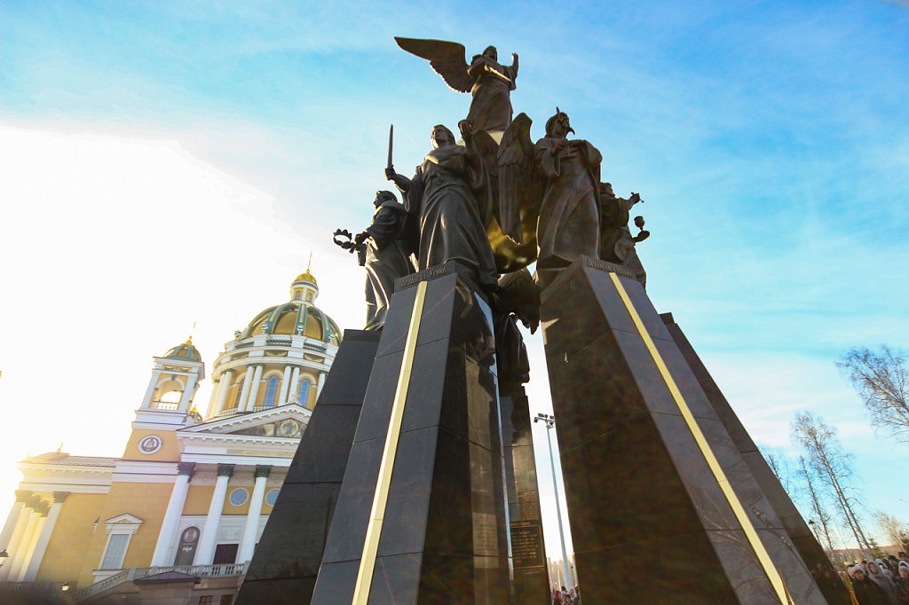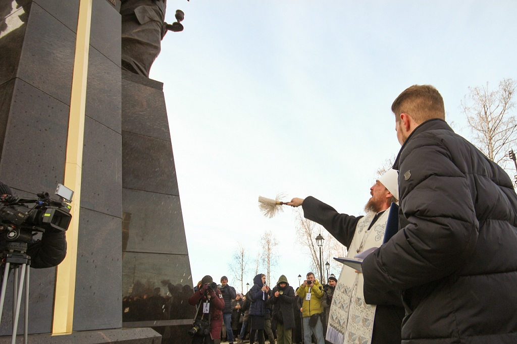 Митрополит Челябинский и Миасский Алексий совершил молебен, а затем освятил монумент. В слове к участникам торжества он назвал совершившееся событие напоминанием о том, что Небесные Силы «стоят на защите нашего Отечества, нашего города и наших людей». «Удивительный памятник еще на этапе создания привлекал внимание горожан, и сейчас он, безусловно, станет новым символом города, местом притяжения челябинцев», – сказал архипастырь.