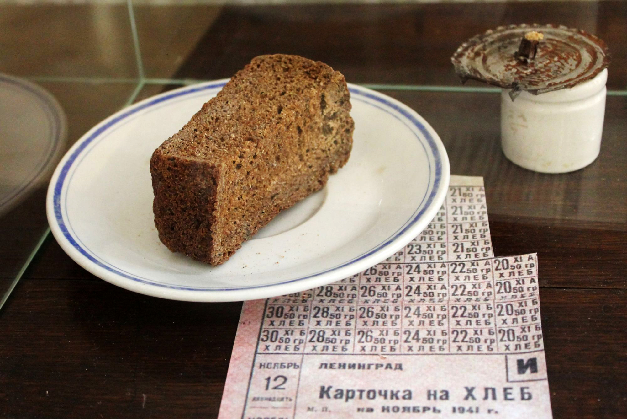 Карточки были введены еще до начала блокады Ленинграда, 18 июля 1941 года Тогда норма составляла 800 граммов хлеба. 2 сентября 1941 года нормы были снижены: рабочим и инженерно-техническим работникам — по 600 граммов, служащим — по 400 граммов, детям и иждивенцам — по 300 граммов. Самая минимальная норма действовала с 20 ноября по 25 декабря 1941 года. По ней полагалось к выдаче рабочим 250 граммов хлеба, всем остальным — 125 граммов. Калорийность такого количества хлеба не могла восполнить затраты человеческого организма даже на простое существование, что привело к резкому скачку смертности — за декабрь 1941 года в Ленинграде умерло от голода около 50 тысяч человек. С началом действия ледовой «Дороги жизни» поступление продуктов в город увеличилось, и нормы выдачи хлеба были повышены до 350 граммов рабочим и до 200 граммов остальным жителям.
