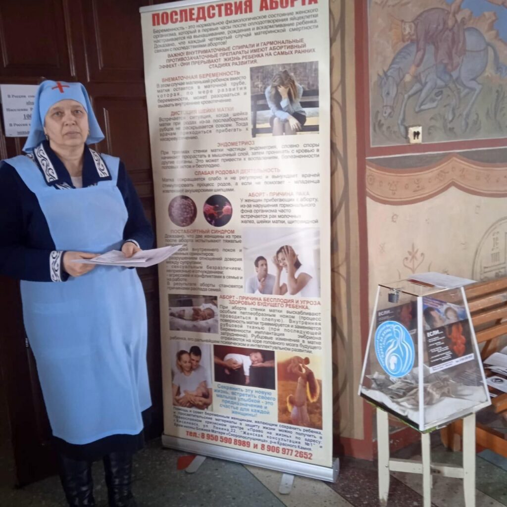 Акцию проводили в течение недели. Участницы раздавали информационный материал о последствиях абортов и напоминали о материнском призвании женщины. Они также подготовили информационные стенды, возле которых знакомили прихожан со статистическими данными о количестве совершаемых абортов в нашей стране, об их последствиях и о духовной составляющей данного вопроса, сообщает сайт Кузбасской митрополии.