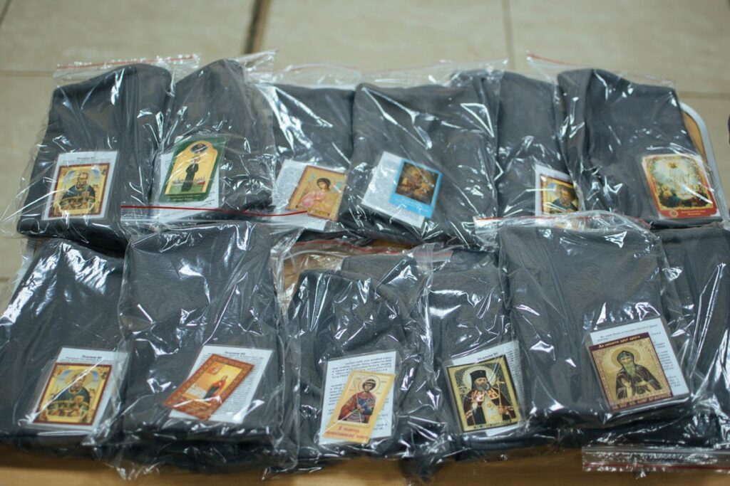 Добровольцы изготавливают бесплатные комплекты, включающие в себя ламинированные иконы и тексты молитв, предметы одежды и снаряжения. Они сотрудничают с ателье, где раскраивают и отшивают снуды, балаклавы и делают заготовки для полевых тактических сидений.