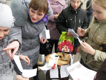 С призывом «Забей гвоздь во вредные привычки!» молодые люди предлагали прохожим начать борьбу со своими страстями. Под понятием «вредные привычки» имелись в виду самые распространенные грехи. В знак решимости участники акции записывали названия своих «привычек» на листочки и прибивали их гвоздями к бревну. Затем миссионеры вручали им листовки о Великом посте, о том, как принять участие в Таинстве покаяния и другом, дарили иконы Спасителя и святых угодников Божиих с молитвами.