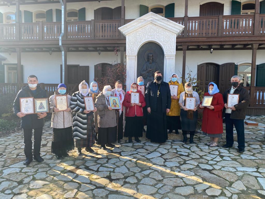 Приходы.ру. 04.12.2020. Активных прихожан Таганрогского благочиния наградили почетными грамотами за многолетние труды по сохранению и благоукрашению памятных мест, связанных с подвижнической жизнью и блаженным упокоением святого праведного Павла Таганрогского, и за значительный вклад в дело приумножения почитания памяти таганрогского подвижника среди православных христиан. Встреча прошла 2 декабря в келье святого.