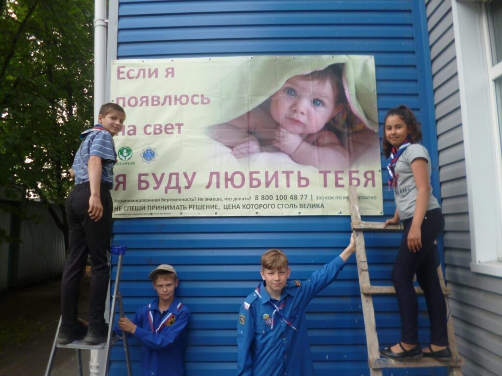 Также в Мысках было установлено два баннера с призывами защитить жизни нерожденных детей. Первый плакат — на улице Мира, возле Детской поликлиники — повесили активисты прихода преподобного Серафима Саровского, второй — на здании женской консультации по улице Пушкина — следопыты отряда в честь иконы Божией Матери «Одигитрия».