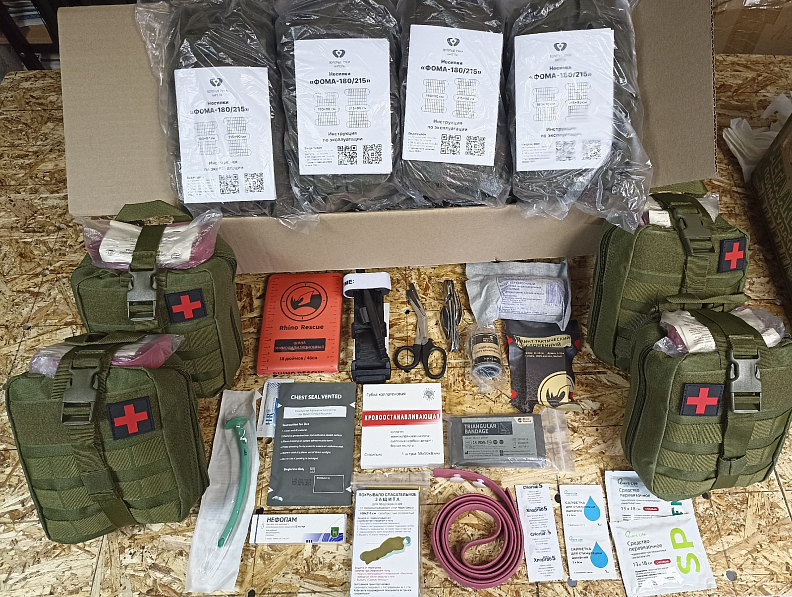 Добровольцы формируют медицинские наборы первого и второго эшелона. В первый вид аптечки входят средства для оказания экстренной помощи — жгуты, индивидуальные перевязочные пакеты, ножницы и кровоостанавливающие турникеты. Во второй прихожане кладут все необходимое для подготовки солдата к транспортировке в госпиталь. На данный момент подготовлено тридцать шесть комплектов, и работа не останавливается, отмечает «Местное время».