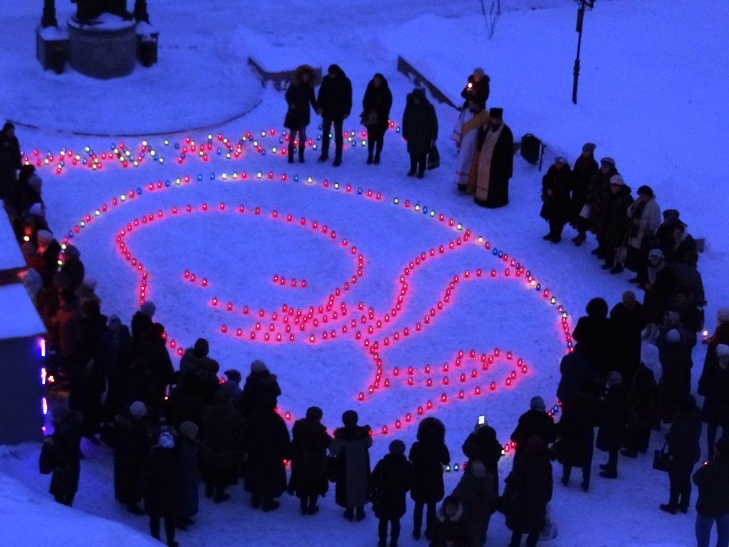 Акцию организовала социальная служба храма. Через площадку, на которой лампадами было выложено десятиметровое изображение, за время мероприятия прошло более трехсот горожан, из них около двух сотен приняли непосредственное участие в зажигании лампад.