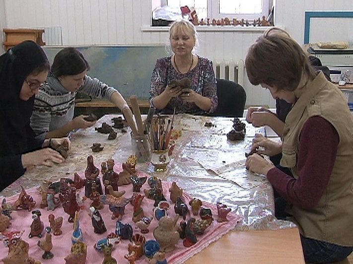 Занятия в мастерской проводит опытный преподаватель автор книги «От истоков к возрождению Смоленской игрушки» Татьяна Тюрина, совмещающая показ практических приемов работы с глиной с увлекательным рассказом, в котором свойства природного материала экстраполируются на свойства человеческой души. «Работа с глиной успокаивает нервную систему, – считает Татьяна Тюрина. – Человек, занимающийся глиной, сам становится мягче».