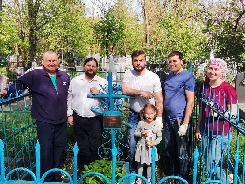 Приходы.ру. 11.05.2021. В преддверии Радоницы молодежь Троицкого прихода Батайска Ростовской области вместе с иеромонахом Серафимом (Баленко) и священником Сергием Ступаком привели в порядок могилы священников и монахов, почивших в ХХ веке.