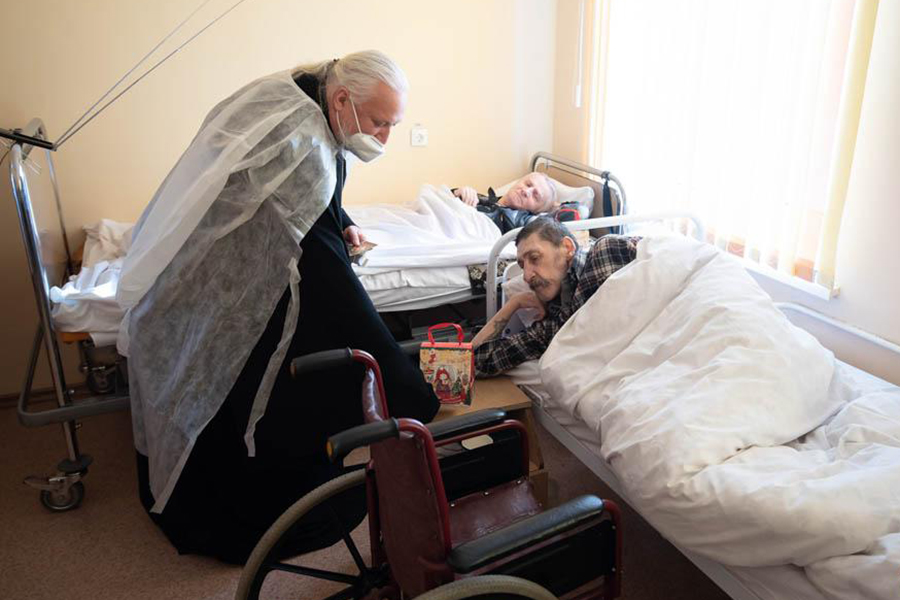 Приходы.ру. 22.01.2021. 18 января архиепископ Гомельский и Жлобинский Стефан посетил пациентов городской больницы, нуждающихся в постоянном уходе. Они получили сладкие подарки, а также необходимые средства личной гигиены.