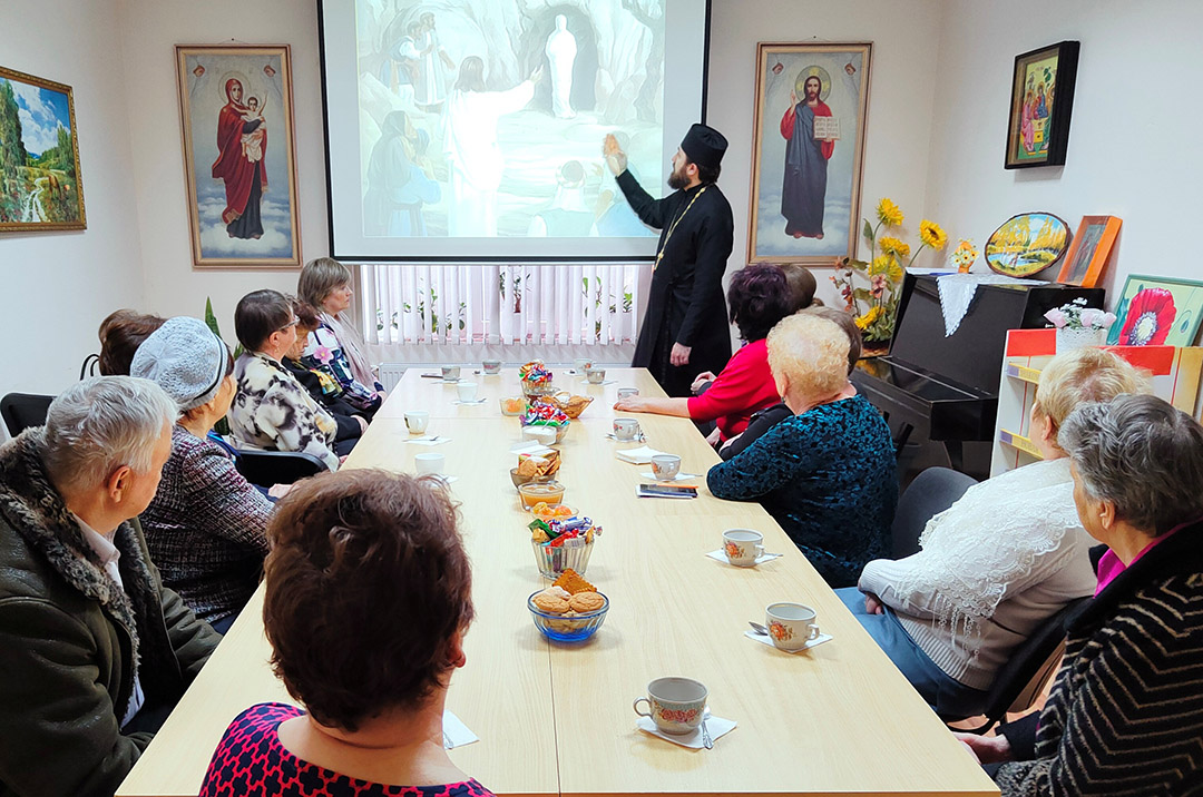 Заведующая приходской библиотекой «Слово» Елена Чичиварихина представила авторскую презентацию об удивительных загадках Вселенной, о жизни космонавтов, о Юрии Гагарине и его визите в Троице-Сергиеву лавру. За чаепитием со сладостями участники встречи обсудили, когда и как будут проходить богослужения предстоящих праздников.