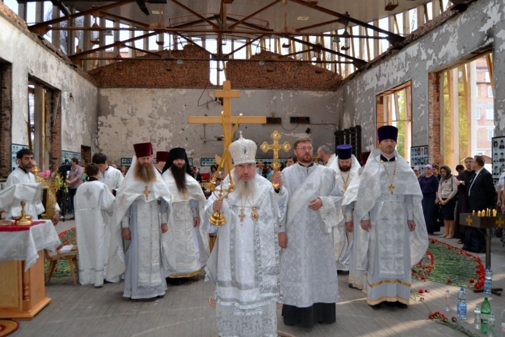 Как сообщает сайт Владикавказской епархии, впервые Божественная литургия была совершена на месте трагедии в 2012 году по просьбе представителей общественной организации «Матери Беслана». Тогда же было решено, что литургия в стенах многострадальной школы будет служиться ежегодно.