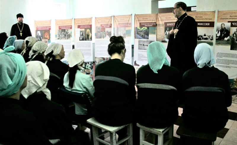 Приходы.ру 15.02.2024. 12 февраля 2024 года священнослужители Камчатской епархии иерей Роман Никитин и иерей Роман Венцак привезли епархиальную передвижную выставку «Дорогами митрополита Нестора» в женскую исправительную колонию № 7, которая находится в селе Мильково Камчатского края.