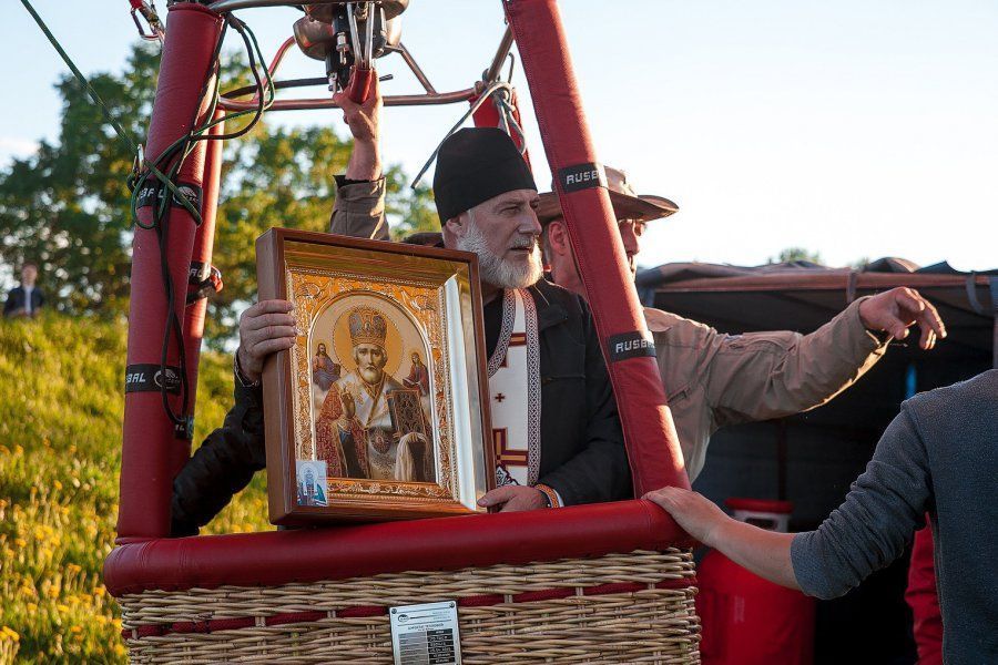 Перед подъемом аэростата помощник епископа Сергия по взаимодействию с государственными и общественными организациями протоиерей Александр Петряков совершил водосвятный молебен, сообщает епархиальный сайт.