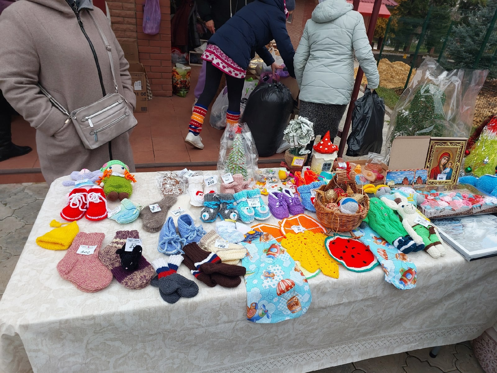 После литургии на ярмарке можно было приобрести вещи и игрушки ручной работы. Украшения, игрушки, расписные пряники и детскую одежду представили мастерицы из разных городов Тульской области. Как рассказал настоятель прихода священник Иоанн Колонтаев, все средства пошли на закупку пряжи для изготовления теплых вещей и отправки их в госпитали и на фронт.