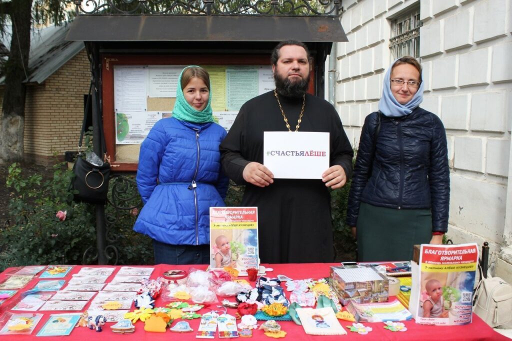 Подобная благотворительная ярмарка уже прошла при Вознесенском храме города. 15 сентября на территории храма каждый желающий мог приобрести понравившееся изделие ручной работы от рязанских мастериц. В итоге на лечение Алеши было собрано более 26 000 рублей. Организаторы и многие гости ярмарки также приняли участие в продолжающемся флешмобе #СчастьяЛеше. В его рамках каждый мог сделать фотографию с соответствующим хештегом и написать добрые слова и пожелания малышу.