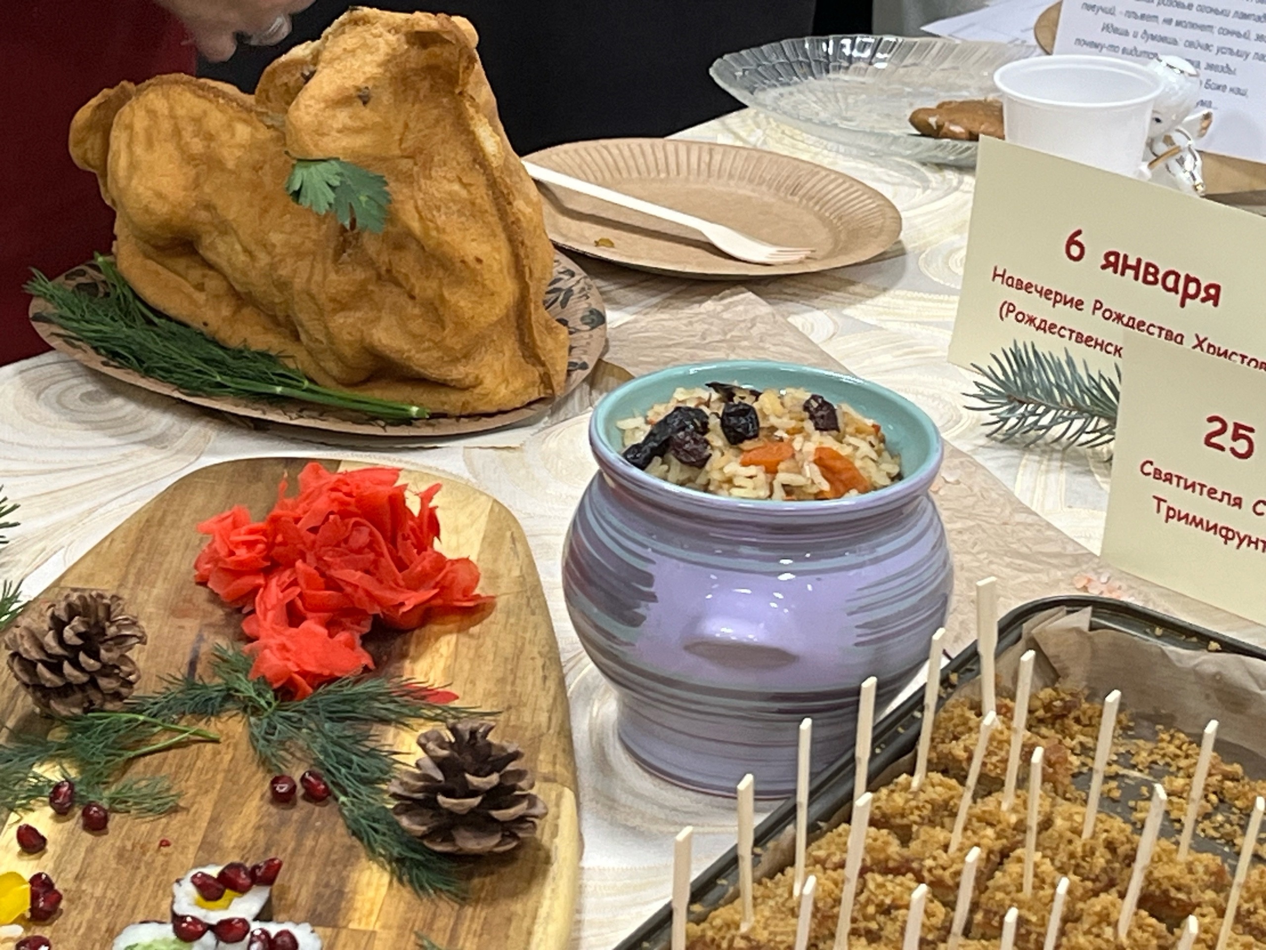 Гостям представили и блюда богатырской кухни (их приготовили прихожане церкви Рождества Богородицы в Селе Булдырь), и целый стол кушаний из тыквы (храм новомучеников Чистопольских епархиального центра), а также 23 блюда кряшенской кухни. Прихожане Никольского собора Чистополя проложили из разных блюд «дорогу поста» от праздника к празднику, а приход Сергиевского молитвенного дома продемонстрировал, как отметить Новый год с детьми. Владыку приветствовали с песней и караваем прихожане храма в честь иконы Божией Матери «Умиление», к Троицкому самовару пригласила команда Свято-Троицкой церкви Чистопольских Выселок, а прихожане Казанского храма продемонстрировали сдержанность и строгую красоту Рождественского поста.