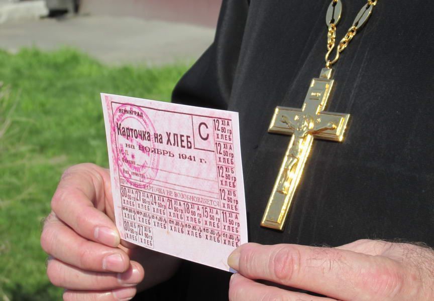После представления батюшка пригласил зрителей в фойе здания, где каждый желающий смог попробовать кусочек блокадного хлеба, а также взять себе на память копию хлебной карточки, по которой выдавалась дневная норма весом 125 граммов. Тогда, зимой 1941 года, потеря хлебной карточки грозила голодной смертью.