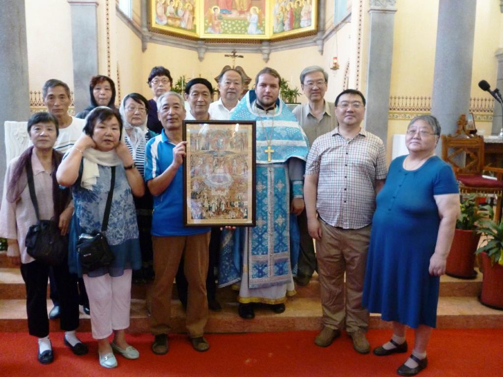 От православной общины Успенского храма в Пекине китайским верующим был подарен комплект икон 222 китайских мучеников, а также иконы для домашнего использования.