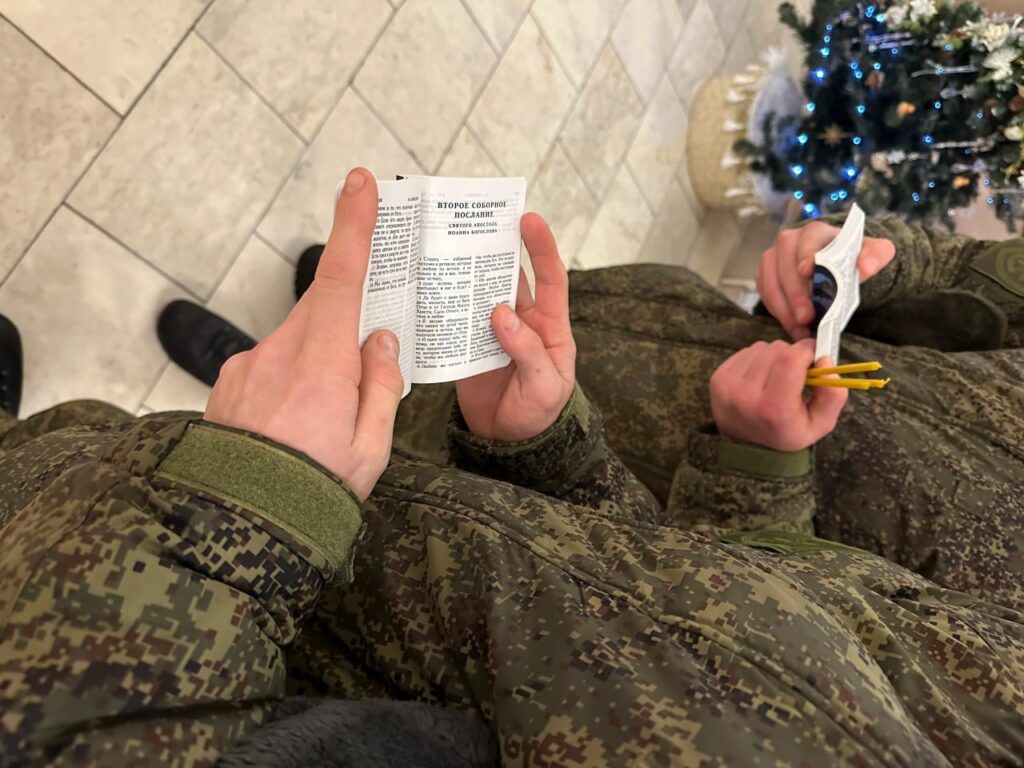 После экскурсии солдаты помолились и зажгли у икон свечи. Всем желающим были подарены Евангелия.