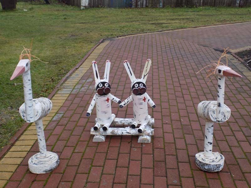 Дети получили в подарок двух аистов и двух зайцев.