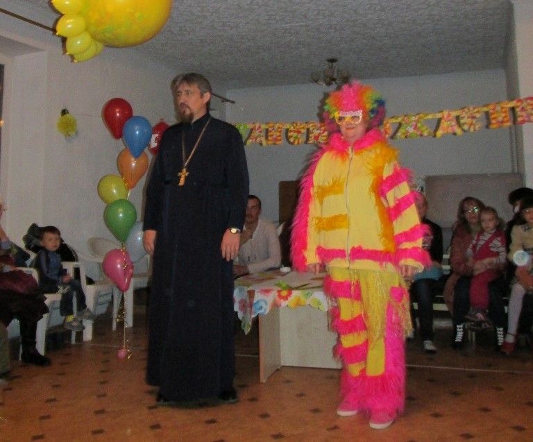 Праздничную программу продолжило костюмированное представление, которое организовали руководитель Детского центра радости Елена Литвиненко и её помощницы Ольга и Наталья. Было много игр, конкурсов и развлечений, веселые танцы и даже шар-сюрприз.