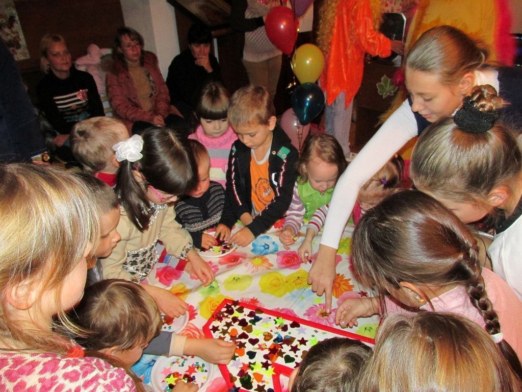Деткам было предложено собрать «цветок радости» с лепестками-желаниями, украсить большую цифру «1», которая символизировала первый день рождения Центра, а также рассказать стихотворения, которые малыши накануне сочинили дома с родителями. Дети с огромным удовольствием принимали участие во всех конкурсах и забавах.