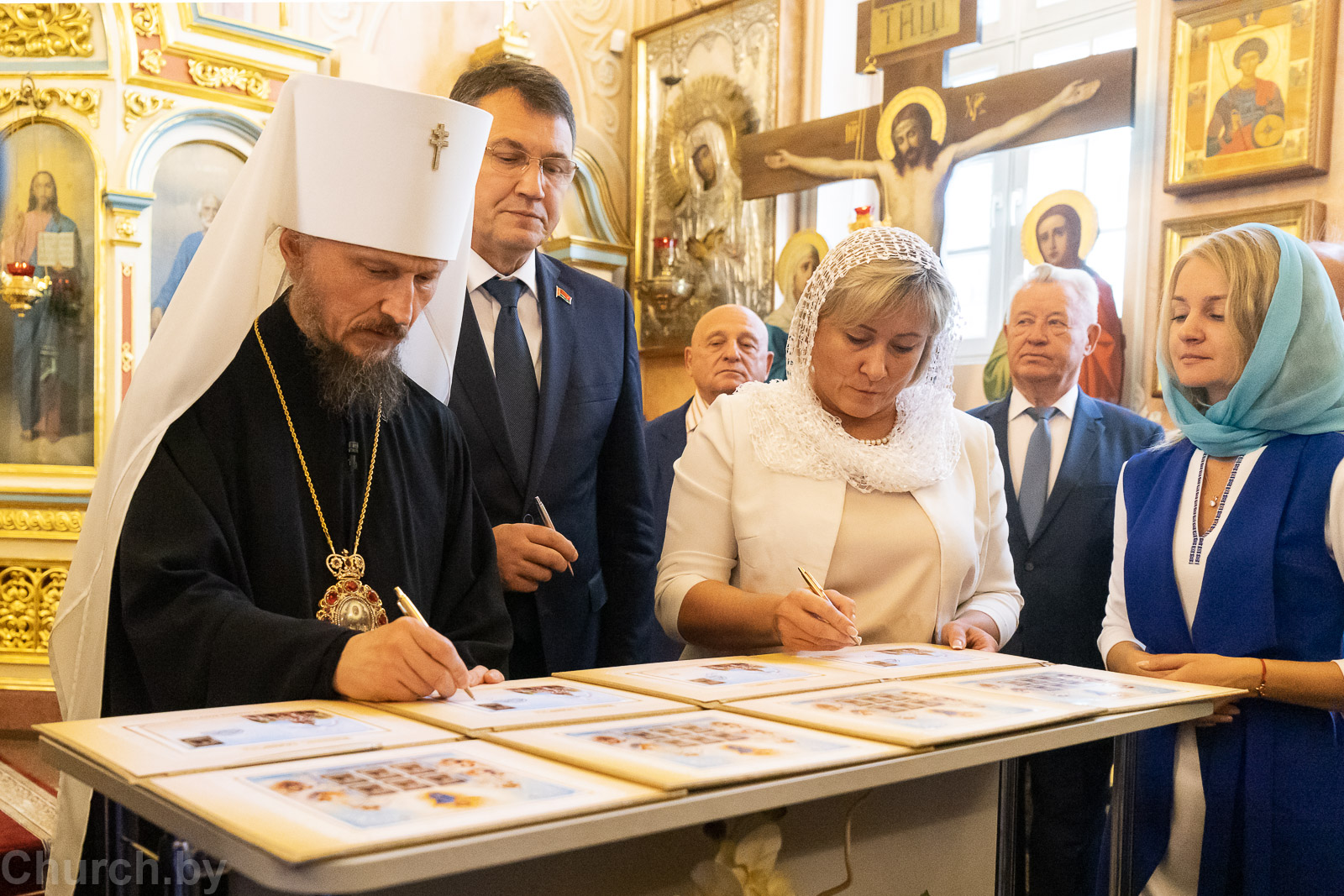 В церемонии приняли участие митрополит Минский и Заславский Вениамин, Патриарший экзарх всея Беларуси, Министр связи и информатизации Республики Беларусь Константин Шульган, настоятель прихода протоиерей Николай Коржич и генеральный директор предприятия «Белпочта» Светлана Юркевич, сообщает сайт Минской епархии.