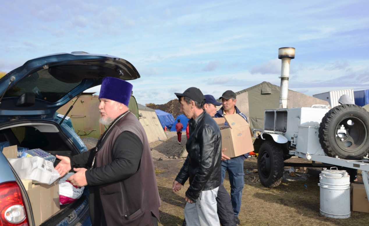 Настоятель Тихоновского храма села Ермолаево протоиерей Сергий Ветров и атаман Оренбургского казачьего войска Владимир Пестов доставили все необходимое в палаточный лагерь около придорожного комплекса гостиницы «Юлсы» в Куюргазинском районе Башкирии, сообщает сайт Салаватской епархии.