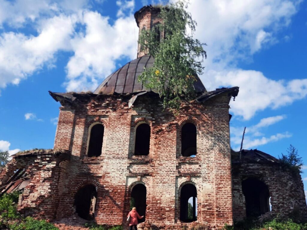 О внешнем облике Покровской церкви, построенной в 1808 году, сохранились живые свидетельства — староста восстанавливаемого храма Светлана Юринская долгие года собирала и записывала воспоминания местных жителей о храме. В годы советской власти церковное здание отдали под сельский клуб, а затем там был зерновой склад. Семь лет назад рухнула зимняя часть церкви. Не смотря на то, что храм сильно пострадал, на его сводах сохранились фрески.