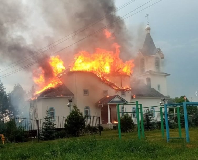 Сообщение о возгорании храма поступило в экстренные службы региона 26 июля вечером. На момент прибытия первого пожарно-спасательного подразделения пламя охватило кровлю трехэтажного церковного здания. К борьбе с огнем привлекли двадцать пять человек и девять единиц техники. Погибших и пострадавших нет, сообщает «Уфа онлайн».