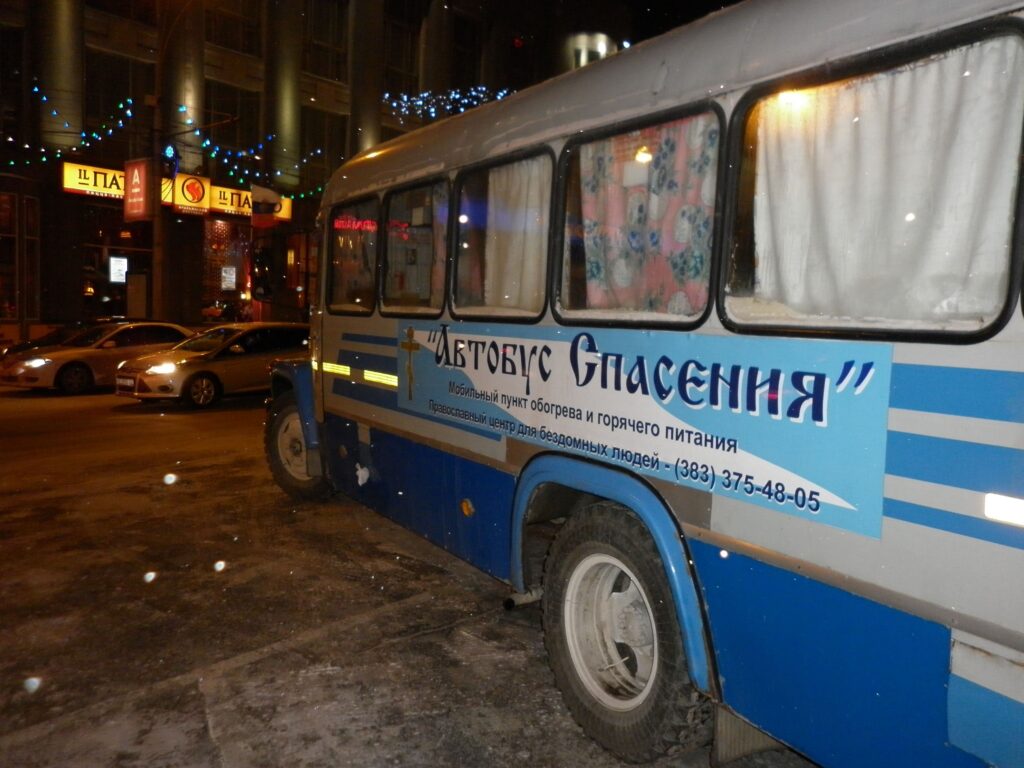 По вечерам по Новосибирску совершает рейд «Автобус спасения» — пункт обогрева для людей, оставшихся без жилья, сообщает епархиальный сайт. Автобус ежедневно объезжает места, где традиционно скапливаются бездомные, которые в сильные морозы нуждаются в помощи.