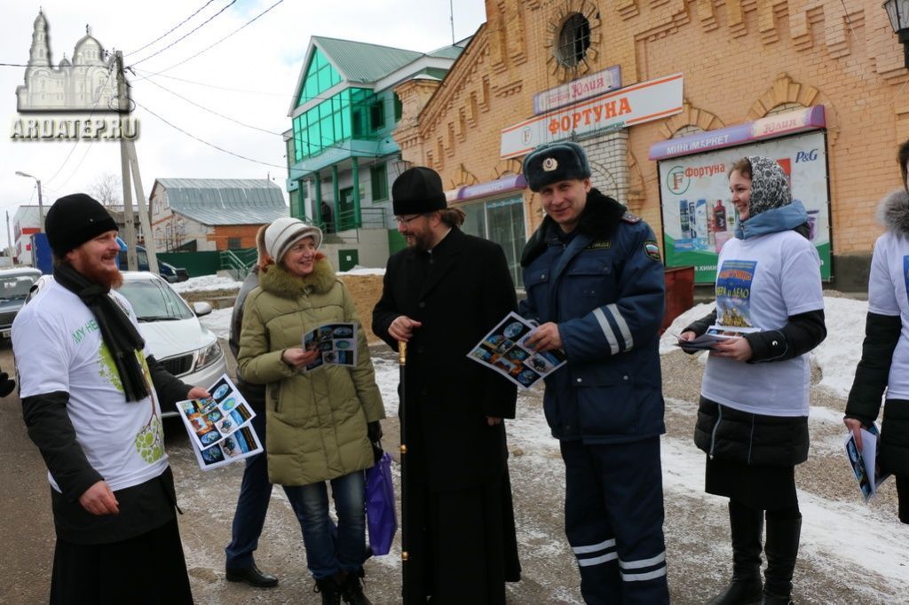 Силами священнослужителей и волонтеров в центре Ардатова было роздано 50 упаковок восковых свечей и большое количество экологических листовок.