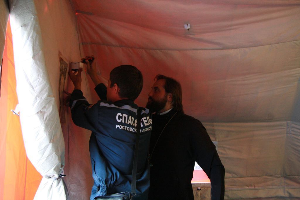 По мнению протоиерея Георгия Сморкалова, окормляющего палаточный лагерь беженцев под Новошахтинском, открытие временной часовни – очень своевременный и важный шаг во взаимодействии духовенства и спасателей, который позволит духовно поддержать тех, кто оказался в непростой жизненной ситуации.