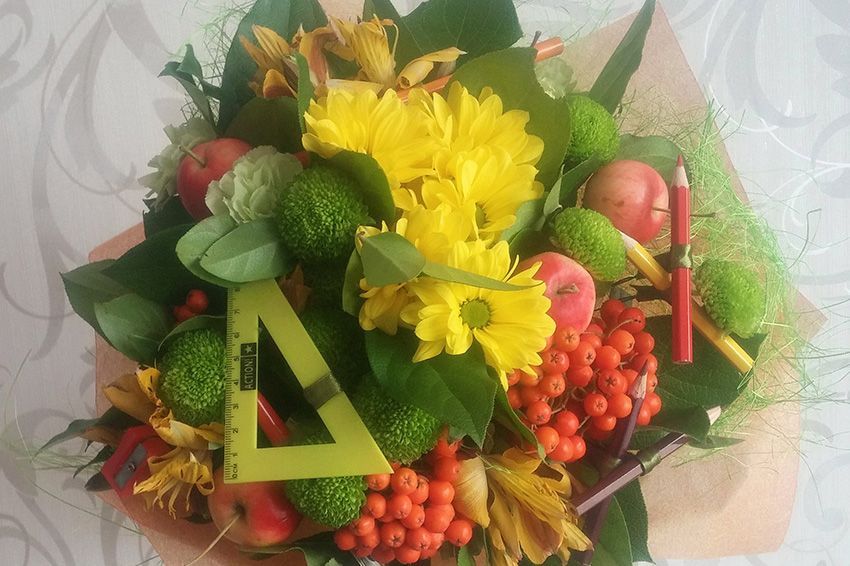 Учила делать оригинальные цветочные композиции Анастасия Сергеевна Ландырева — флорист с 13-летним опытом работы, сообщает сайт митрополии. Ярким акцентом в букетах из подсолнуха, альстромерии, кустовой хризантемы, солидаго, яблок и зелени стала авторская пряничная табличка «С днём знаний» от мастерской «Пряничный домик».