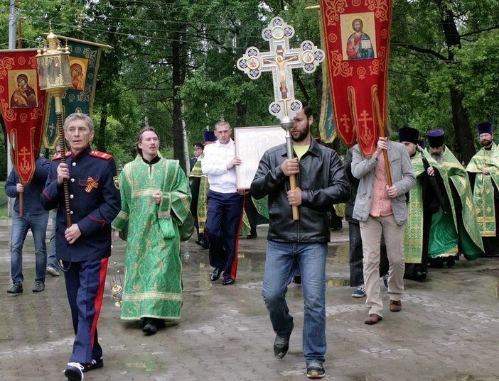 Затем крестный ход вернулся в Серафимовскую церковь, где был завершен молебен святому благоверному князю Александру Невскому.