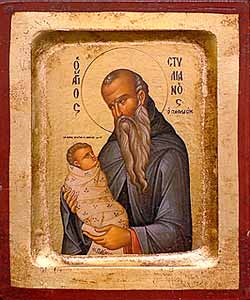 Этот угодник Божий, подвизавшийся в Малой Азии, считается покровителем маленьких детей. На иконе святой изображается держащим спеленатого младенца.